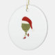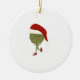 Running artichoke wearing a race bib, sneakers and a Santa hat
