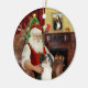Santa at home relaxing in front of a cozy fire with his tri color Australian Shepherd before the big night. Notice Mona Lisa hanging over the mantle.