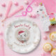 Christmas Boy Baby Shower paper plates with the cute Little Elephant in Santa hat, faux rose gold leaves and snowflakes. Easily personalize the text. - Kate Eden Art