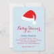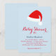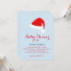Fancy ribbon script and a red Santa hat accent this icy blue baby shower invitation, making it perfect for the neutral or boy winter, Christmas or holiday time shower.