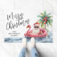 "Merry Christmas" appears in the top left corner, with space underneath to personalize with your family name or a short message. A perfect way to greet guests with coastal holiday vibes, whether you live in a tropical location or just love a beachy twist on Christmas.