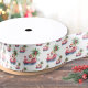 The playful scene includes a palm tree decorated with ornaments, gentle ocean waves, and a small island behind Santa, all illustrated in a charming rustic watercolor style. Use this ribbon to tie around gifts, add flair to wreaths, or incorporate into your festive decorations. A cheerful way to bring a bit of surf and sand to your seasonal celebrations.