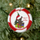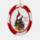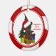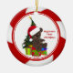 Baby's First Christmas Ornament features an adorable bear wearing a Santa hat set on a red & white candy cane striped background! Personalize with your baby information and date and you're all set to go! Wonderful dated keepsake gift for your baby's 1st christmas. graphics©delightful-doodles