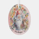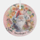 Santa Birds and Flowers on Light Red Name Monogram Glass Ornament