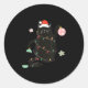 Santa Black Cat Tangled Up In Christmas Tree Light Classic Round Sticker