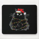 Santa Black Cat Tangled Up In Christmas Tree Light Mouse Pad