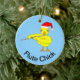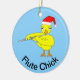 A cute yellow chick wearing a Santa hat and playing a flute is a humorous music gift design to tickle the funny bone of woodwind musicians in orchestra, concert and marching bands during the winter holidays.