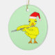 A cute yellow chick wearing a Santa hat and playing a flute is a humorous music gift design to tickle the funny bone of woodwind musicians in orchestra, concert and marching bands during the winter holidays.