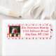 Santa Cap Patterned Christmas design features the festive patterned design of Santa caps, candy canes. snowflakes and stockings as background to your information, displayed in bright, red lettering. The photo you supply is featured on left side of text.