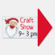 Christmas craft show signs are just what you need to place outside to direct customers to your Holiday arts and Christmas craft show. Christmas craft fair ideas include signage, craft show banners, and advertising to make it a successful event. Custome this craft show sign with the name of your own event. This Santa themed Xmas craft show sign is perfect to post on the street for directions to the craft show.