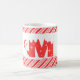 Bring the holiday spirit to every sip with this personalized Christmas coffee mug! This 11oz ceramic mug features a festive red and white candy cane stripe border, a bold snowy letter design, and a cheerful Santa accent—perfect for adding a touch of joy to your morning coffee, hot cocoa, or tea.