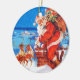 Santa Claus and His Reindeer Up On the Rooftop Ceramic Ornament