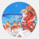 Santa Claus and his Reindeer Up on the Rooftop Classic Round Sticker