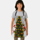 Great color and even though I ordered the kid size, it covers well enough to use during the holidays. I am not a big woman and prefer a shorter apron. I stand 5"6" and the length of the garment goes to mid-thigh. The tie straps fit well at my waist and even though there is no neck strap adjustment, the opening is plenty big enough. I am happy with the size and fit. I am sharing my apron with my 10 year old grandson, too! The color is vibrant and looks good, as shown on the website. The stitching looks strong and reinforced. Photographed is front side and back side of the apron, reinforced straps and coloring. My phone camera may not be the best at showing the details.