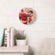 Santa claus and snowman in snowfall large clock