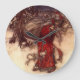 Clock featuring Arthur Rackham’s illustration Santa Claus (1907). A red robed Santa Claus carries a bag of Christmas presents in a snowy wood. Elves fly by his side. A jolly gift for Christmas!