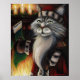 Santa Claus Cat Christmas Stocking Art Poster