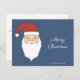 A postcard with a Santa Claus head and its red hat on a midnight blue background and customizable texts "Merry Christmas", family name and a message on the back. A little attention to send to your family and your friends for the end of year holidays. You can also use it in business and send it to your customers!