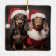 Santa Claus Dachshund Twins Ceramic Ornament