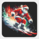 Santa Claus Enjoys Skiing in a Winter Wonderland Square Sticker
