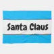 This fun Christmas holiday design features retro SANTA CLAUS text inside a wide white center stripe highlighted with black pinstripes against bright sky blue outer stripes.