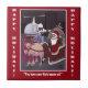 This funny cartoon about Santa and Rudolph the red-nosed reindeer was created by the renowned artist, D.B. The image background and text can be customized.
