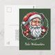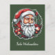 Sticker with the head of Santa Claus and a beautiful Christmas wreath. Digitally created in colorful cartoon style.