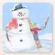 Santa Claus Helper Building A Silly Snowman Square Paper Coaster