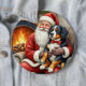 Santa Claus Holding Bernese Mountain Dog Christmas Button