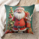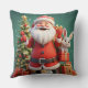 Santa Claus Holding Present with Rabbits Throw Pillow