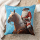 Santa Claus in a Western Hat on a Horse Christmas Throw Pillow