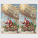 Charming vintage wrapping paper featuring Santa in an airship full of toys.