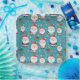 Cute Christmas design of holiday Santa Claus and gifts on aqua background with snowflakes.