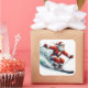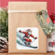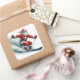 Santa Claus Joyfully Skiing Down Snowy Slopes Square Sticker