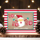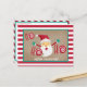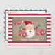 Santa Claus Peppermint Personalized Christmas Postcard. Cute Santa Claus design with a candy cane stripe background and peppermint candies.
