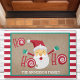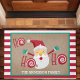 Santa Claus Personalized Monogram Christmas Doormat. Adorably cute Santa Claus holiday Christmas design. This design has red and white candy cane stripes and the words "Ho Ho Ho". Personalize this custom design with your own family name.