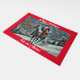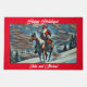 This fun Christmas design shows Saint Nicholas in a red cowboy hat and riding a horse.