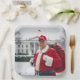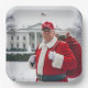 Trump dressed as Santa Claus stands confidently in front of the White House lawn wearing a red "MAGA" cap and carrying a large red sack