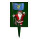 father christmas marching with the state's flag of Oregon guided by his lovely friend