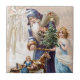 A beautiful vintage tile featuring Santa Claus with an angel and a sleigh full of toys.