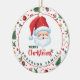 Add a festive touch to your xmas tree with this adorable ornament. Featuring a charming illustration of Santa Claus and a festive pattern as well as your family name, this ornament is perfect for adding a personal touch to your christmas decorations.