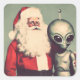 Santa Claus with Space Alien Sci Fi Christmas Square Sticker