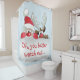 This fun custom designed bathroom shower curtain features Santa Clause and Rudolph the reindeer with the words from the classic "Santa Clause Is Coming to Town" song that everybody loves. Happy holiday decor for your home.