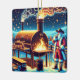 Santa Cooking On The BBQ Pit 3 Christmas Ceramic Ornament