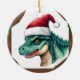 Santa Dinosaur Ceramic Ornament