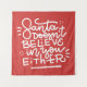 Bring a touch of humor to your holiday decor with this playful design featuring the phrase "Santa Doesn’t Believe in You Either." Perfect for those who love a bit of cheeky fun, this graphic can be applied to a variety of products, making it an ideal gift or decorative piece for the festive season.
