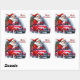 Santa Driving a Red Car Through a Snowy Landscape Square Sticker