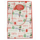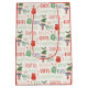 This cute Christmas gift bag features a fun Santa Claus elf theme, with images of an elf, Santa's toy sack, holly, and a gift package. Predominant colors are green, navy blue, red, and white. Text on the bag says "Elves", "Santa", "Candy", "Naughty", "Nice", "Gifts", etc. A red oval at the front top says "Merry Christmas" in script, with your custom signature just below. Both sides have the same background pattern, with the sides and borders being matching Holiday red.