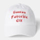 Hat is shown in white with snowcapped letters in Santas Favorite Elf.