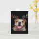 Santa English Bulldog Reindeer Light Christmas  Card
